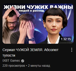 Ну что сказать про это: Плюсы: - Сериал помогает от запора. После просмотра можно дристать. - Рыжая и ГГ ебабельны. - Нигер ржачный. - Грабик топ. Минусы: - При чем тут чужой? - Зачем переделывать надо было сценарий? - Куда проебали адекватный сценарий Чужой Земля ?!