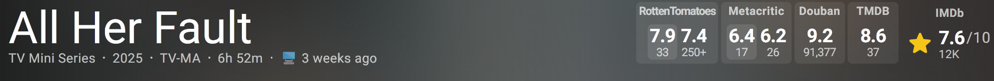 >в овер десять раз больше оценок чем у винса Прикол, почему столько отзывов у затянутой драмы, сериал конечно норм, но как минимум в два раза сократить можно было.