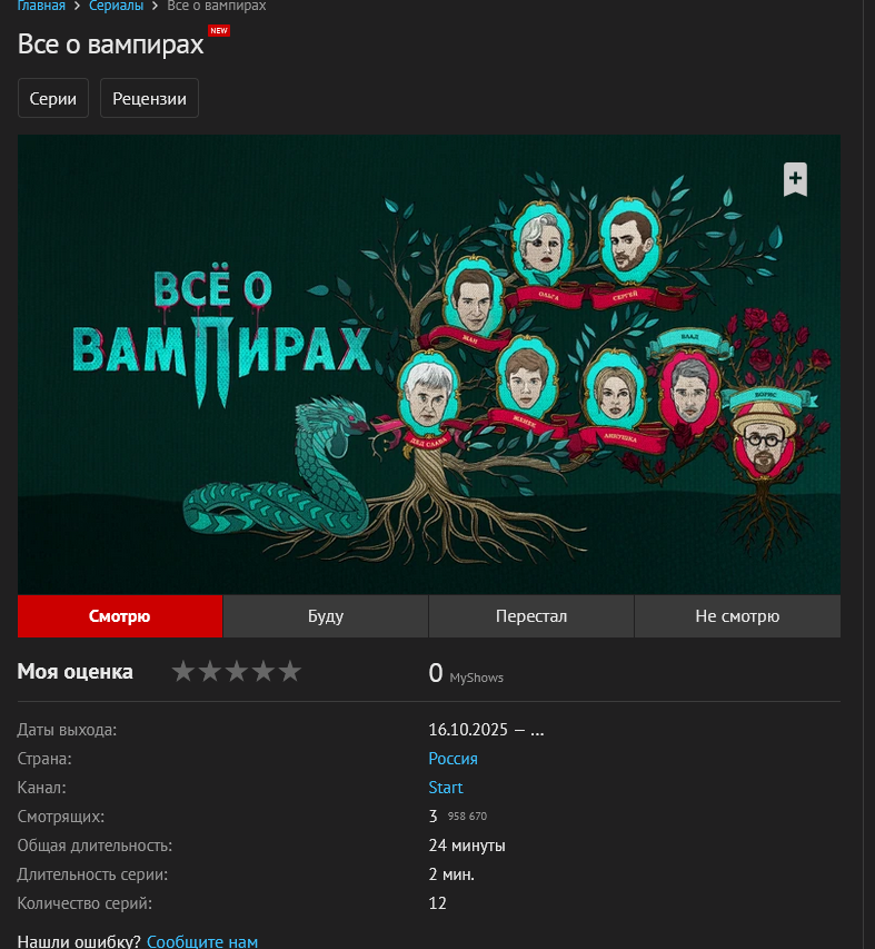 «ВАМПИРЫ СРЕДНЕЙ ПОЛОСЫ» 3 сезон (Start) — ноябрь «ЧЁРНОЕ ОБЛАКО» 2 сезон (Okko) — осень Вот это буду смотреть, а еще Красный-5 очень хочется