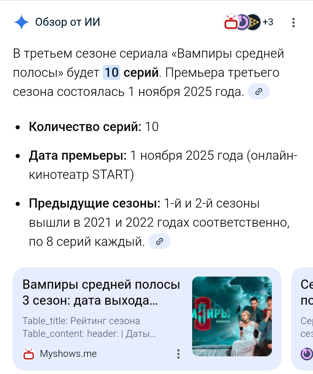 >>3445457 >>3445460 >>3445479 Так пять или десять серий будет? На торрентах переобулись и указывают в 3-м сезоне текущее наличие количества серий из десяти. А на Кинопоиске указано, что всего только пять серий. Кому верить? Инсайды есть?
