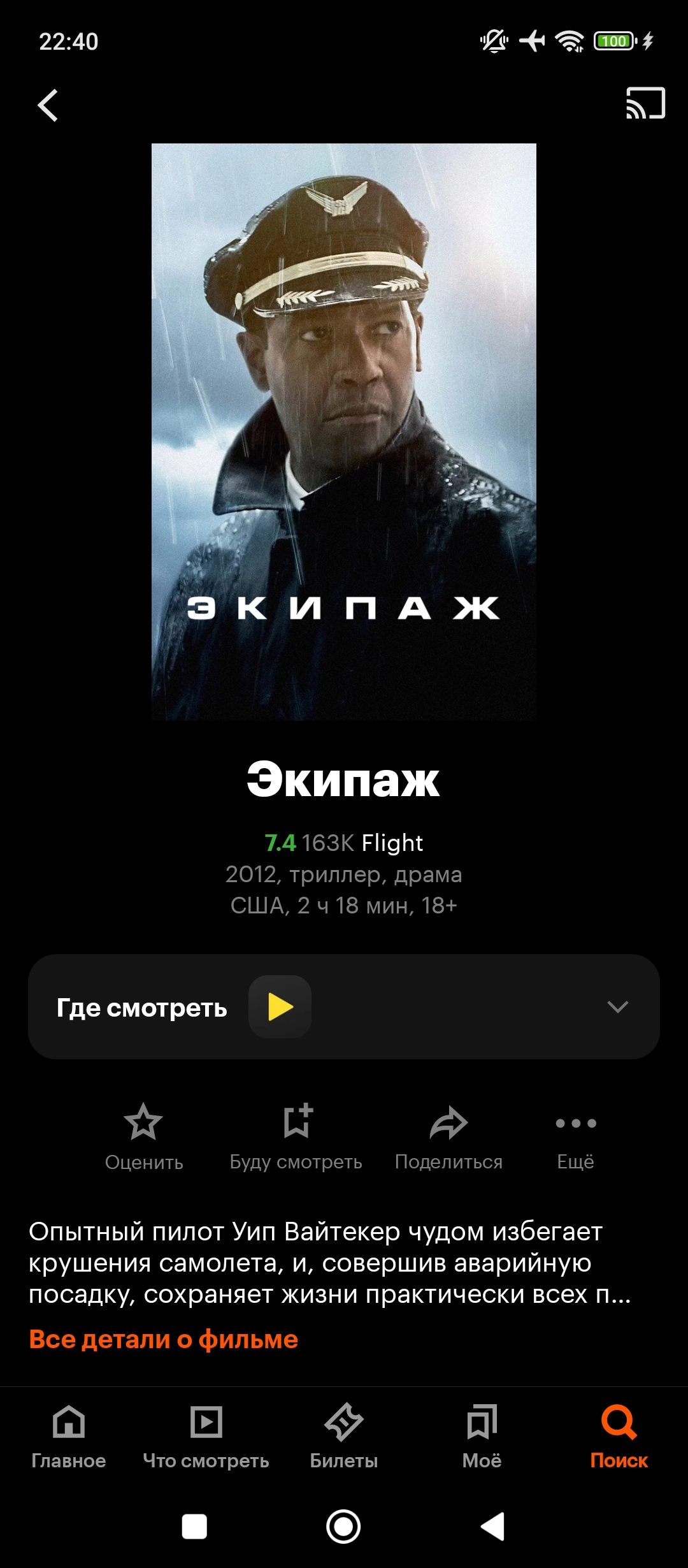 Алкоголической покаянной линией напомнило "Экипаж" (в оригинале "Flight") с Дензелом Вашингтоном.
