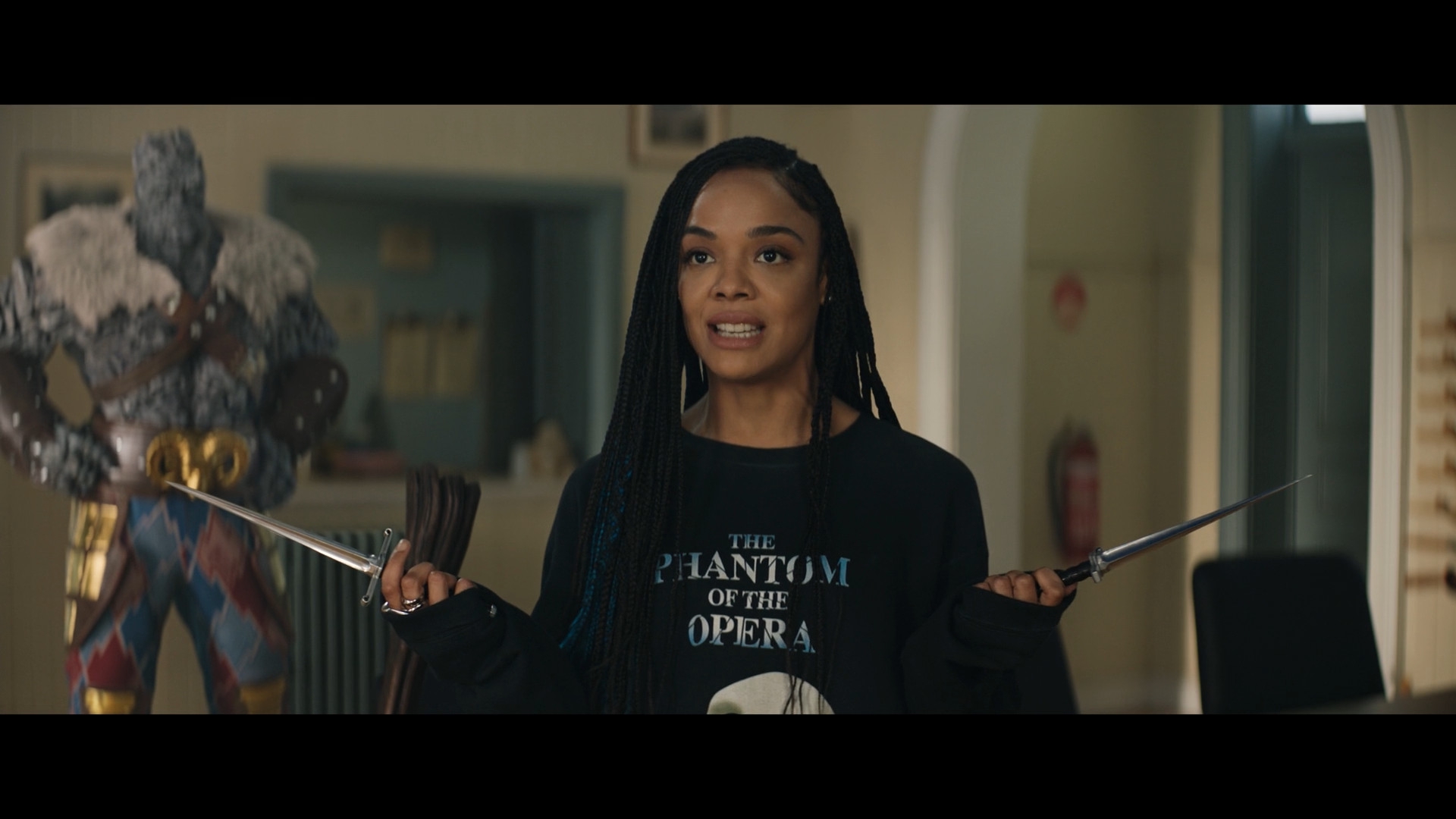 Вот ножичек отсюда. Вот, ни хера себе откуда шкура. Вот почему она одна. Вот намёк откуда бежала. Вот кровавый намёк всем намёкам намёк, и это в восемь лет! Вот про театр. Вот книжка торчит из рюкзачка. Дальше вообще начнёт общатся цитатами из комикса.