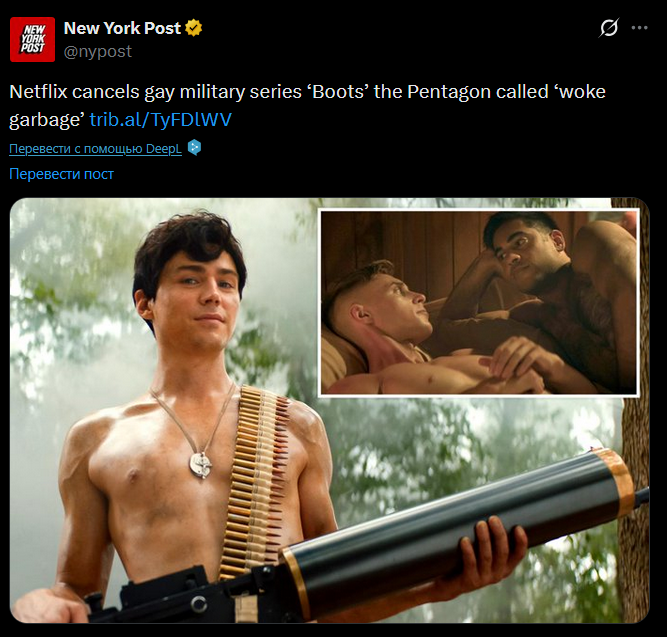 А вот сериалы - слоп-слопыч. Оно и видно. Челик нащупал нерв у возрастной консервативной аудитории США и последовательно туда бьёт. Правда я видел новость что он разорвал контракт с Парамаунт+