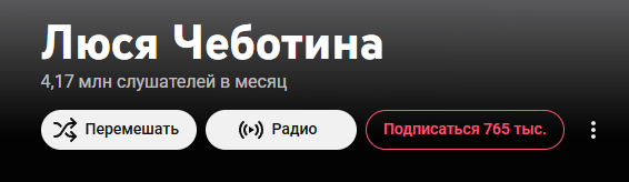 Ну ладно, сделаем тебе поблажку и проверим ещё один сервис, вот тебе стата ютуб музыки. Твоя мировая звезда против двух русских исполнителей: какая-то литерралиху и Меладзе. На недоступном нам (немытой русне) сервисе, кста. Ну и вдогонку настоящая мировая звезда для сравнения.