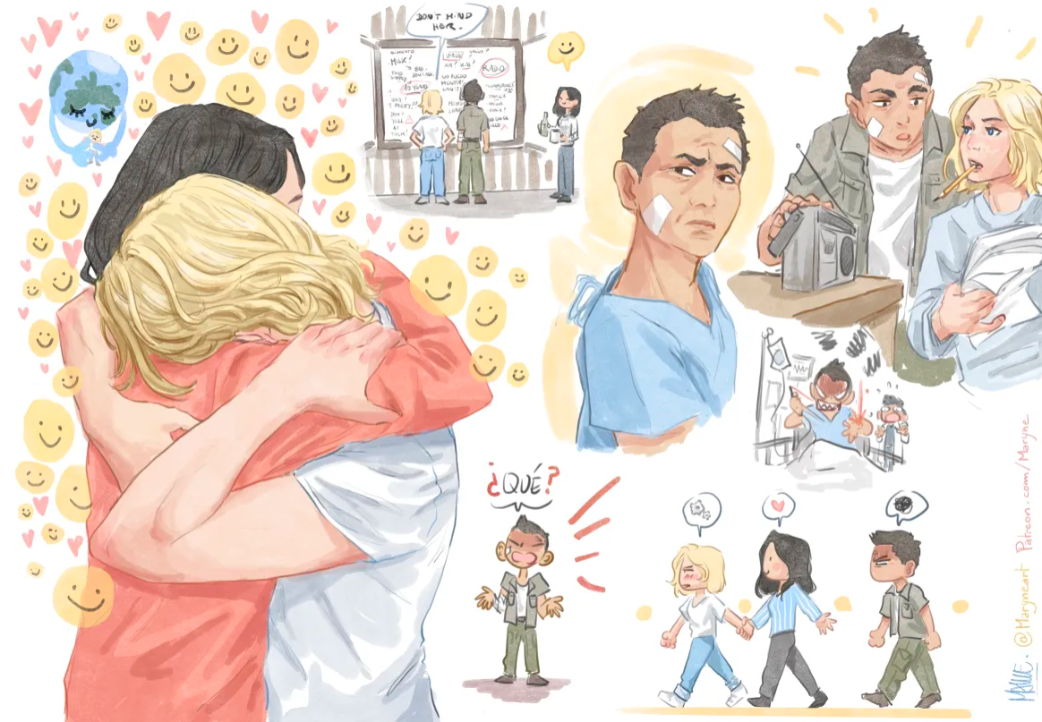 Немного сбивает с толку развитие персонажа Кэрол. Сначала она искренне радуется обществу, ведет задушевные разговоры - окей, после изоляции это нормально. Затем напоминает себе на доске, что они едят людей, ладно, возвращаемся к плану изменить мир. Продолжает выведывать информацию. Лжет, притворяется, что на доске пишет книгу, а не планы по спасению мира. После случая в кафе вдруг срывается на легкую истерику, как вы можете мной манипулировать! (тем временем манипулируя доверчивым роем все это время, но это другое, это ради общего блага же). Внезапно поддается порыву почесаться варениками, можно обвинить в этом рой, он сам первый полез целоваться. Но после того как потрахалась, она вдруг садится за книгу, и не похоже, что это какое-то прикрытие, потому что она сидит и ждет пока Зося прочитает и поделится впечатлениями, даже не может усидеть на месте от нетерпения. И принимает в этот раз откровенную лесть - хотя от своей бывшей не принимала - закрывает глаза на то, что рою похую что читать, донцову или Шекспира. Как будто бы в последней сцене она уже не пытается ничего выведать, а просто хочет увидеть в Зосе индивидуальность, ну или хотя бы притвориться, что она есть, чтобы потрахушки были веселее и не так давили на совесть.
