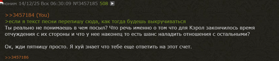 Это все лирика, чел, ты обосрался с трактовкой и это факт и нехуй тему переводить. Че там там дальше будет по твоей логике? Это все коварный план Кэрол только уже многослойный или что?