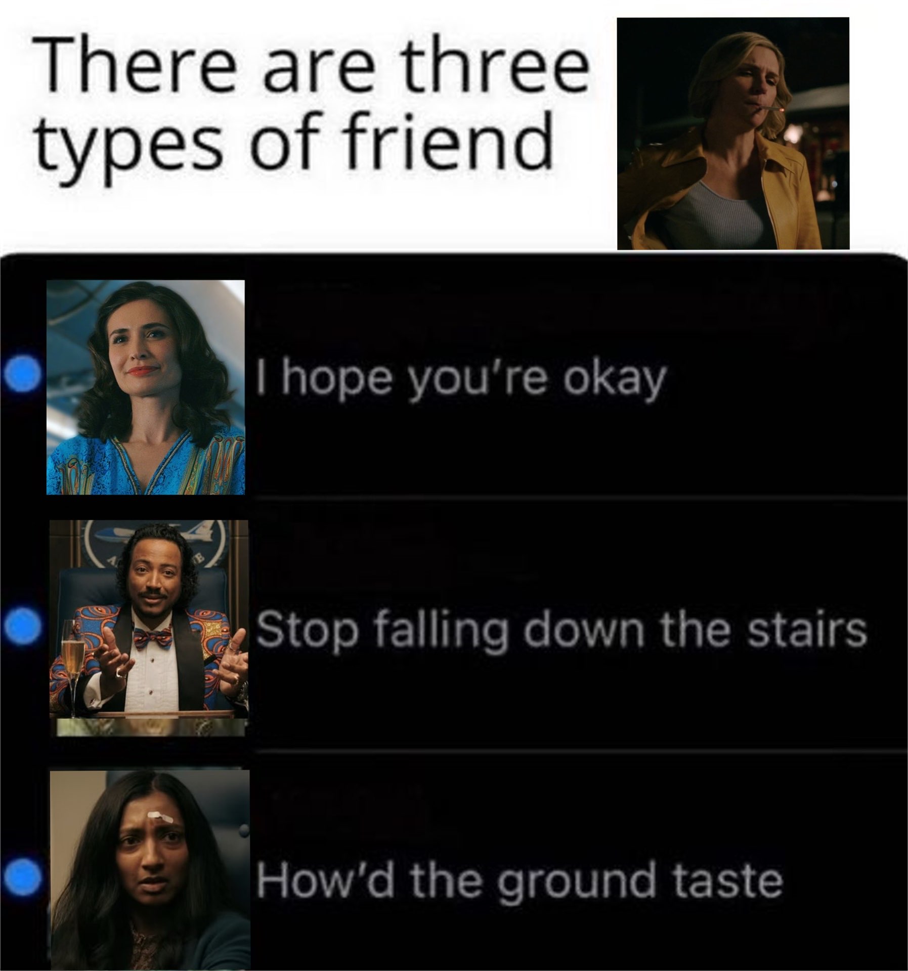 Вижу такой конфликт - Мануня пытается вернуть Кэрол в реальность, в которой она спасала мир, а Кэрол в свою очередь борется с желанием остаться в текущих отношениях с роем/Зосей , потому что регулярный секс слишком хорош, чтобы от него отказываться ради спасения мира.