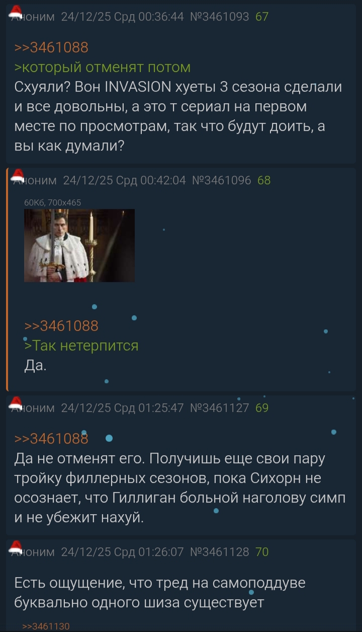 >>3460805 расслабься я просто бампкнуль. ато чет вы заглохли тут. да и нищего /tv хайпику нагнать надо, финал как никак. я нихочу ничего смотреть, даже первый сезон severance кое как доскроллил через силу. накачал кучу говноты, но сижу смотрю брейнрот стримы. а плюмбум смотрел просыпаясь в 9 утра и жадно обмазываясь еще в торрент клиенте недокаченным файлом в "последовательной загрузке"