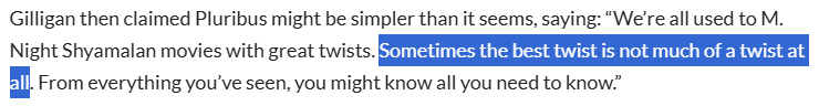>Но реальность в том, что ИРЛ так по большей части и есть. Большинству людей похуй на индивидуализм, личные границы, свободы, либерализм, толерантность, сострадательность и в конечном итоге, как самое главное - на cognitive liberty. Для большинства это непонятная ерунда сахибов. Они не могут провести параллели между тем, что в их щитхолах средневековье, а в США общество из научной фантастики, и тем, что это американское общество проистекает как раз из этих ценностей и институтов. Не случайно практически вся научная фантастика - это американская литература. Другие культуры в целом это особо и не заботит. Потерпим, стерпится, ну и ладно, так сойдёт, засансаримся, заединимся. США - это и есть инопланетная технология. Во времена просвещённого абсолютизма собрались самые просвещённые люди и создали этот абсолютно уникальный проект, "Foundation ". Потому что отчётливо понимали, что если этого не сделать, то человечество так и будет барахтаться на фестивалях фекалий. Но ценности этого проекта, всех этих философий, индивидуализмов, либерализмов настолько абстрактны, что большинству людей их даже объяснить вот так с наскока даже не получится. Это же не правый и левый популизмы с их примитивными речёвками, вроде "отнять и поделить", "бей чужих", "ты меня уважаешь?" и т.п. При этом интуитивно наверняка многие согласятся, что не получать по еблу лучше, чем получать, а не бояться лучше, чем трястись от страха, но вот артикулировать это на фундаментальном уровне посыла не так-то просто. А на уровне посыла простого, чтобы работяга слушающий тебя абстрагировался от вбиваемых ему ежеминутно ИРЛ популистских право-левых речёвок("не понял, бля, это чё, повесточка шоле нахуй?") и начал действительно слушать - сложно чрезычайно. Кино, а конкретно, американское кино - вот отчасти такая попытка донести человечеству, что пить из лужи - плохо. Но опять же, в силу того, что доносимое слишком абстрактно, людям далёким от американской культуры(т.е. античной философии и европейского ренессанса) это тяжело воспринять даже на самом начальном уровне. И это мы ещё не говорим о том, что есть группа людей, для которых cognitive liberty - это буквально плохо. Слишком жирно холопу такое иметь, особенно в средневековом обществе. Угроза. Т.е. 90% Плюрибуса непонятно, что такое вообще cognitive liberty, 9% Плюрибуса - ненавистники этого и только максимум 1% Плюрибуса понимает, что это и понимает ценность этого. Это и есть оболочка сюжета этого произведения.