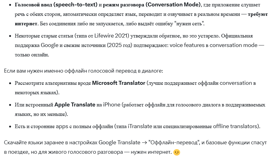 >>3461221 Разве переводчику не нужен онлайн, подключение к api гугла, связь с нейросетками на сервере? Какой нахуй режим самолёта? Она даунша? Это напоминает мемы о типикал пк-кретинизме