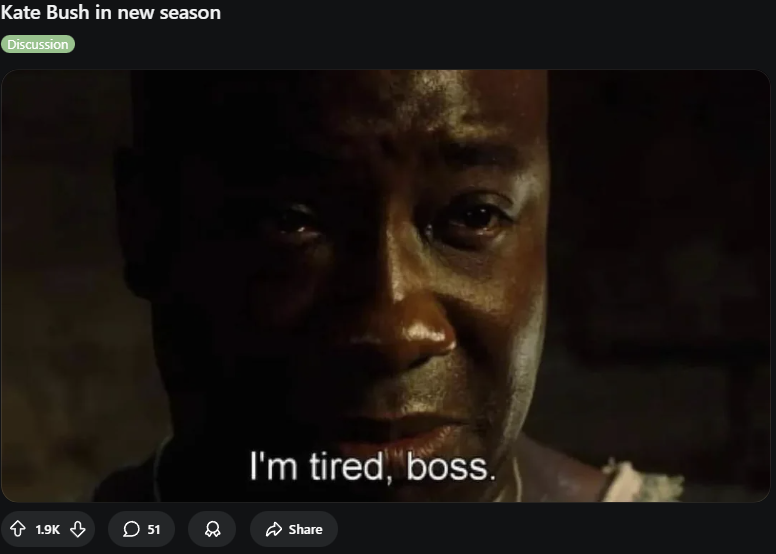 We're inserting too much useless tropey drama (probably to pad the run time as per Netflix request). Some of the stuff we are dealing would be fine if this was season 2 or 3 (or if we were on season 5 of 8 or something). There are literally like 2-3 hours left in the show and we're dealing with trivial shit like Vicky being upset at Maya Hawke? This love triangle stuff with the teens? Hopper not trusting El? I thought some of this was resolved and was wrapped up, but nope. We are retreading stuff and spinning the wheels over and over. People who say this isn't a problem are going to be so mad when the final credits roll and nothing is explained (about Vecna's backstory, what is dimension X, etc) because we wasted so much time on inconsequential stuff instead of answering important questions and uncovering the lore.