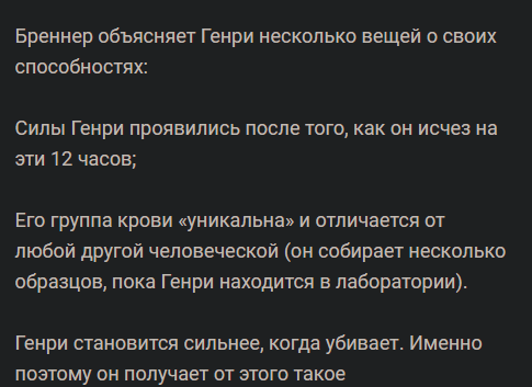 Непопулярное мнение. И в чем Генри не прав? Мир - прогнил, люди - говно. Если для того, чтобы остановить порочный круг - надо пожертвовать невинной душой, то достоин ли такой мир этой жертвы? Не лучше ли изменить его раз и навсегда, избавив от человеков и человеческих пороков? Людишки всегда будут стремиться к сверх-силе, даже зная, что она их уничтожит. Ну ок, пока что разрушили мост, но где гарантия, что человечишки опять не полезут своими паклями к запретным знаниям, и не понадобится очередное жертвоприношение? Ведь это буквально гностический (ну да, где без этого!) мотив о том, что наш мир - это на самом деле ад, замаскированный под идиллию, порочное создание Демиурга, а реальный смысл человечества - выйти из этой иллюзии и обрести знание, которое станет окончательным и положит конец всем страданиям и чувствам. Что Генри и попытался сделать. Но быдлу важнее сохранить иллюзию счастья и веры, что добра в мире больше, чем зла.
