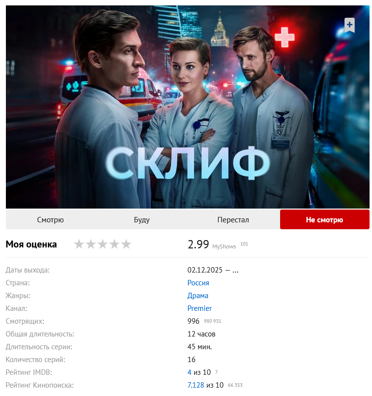 После иронической "Почки (https://t.me/lord_kino_serials/108)" и триллерного "Хирурга (https://t.me/lord_kino_serials/657)" тема трансплантологии возвращается на наши экраны в более светлом ключе. Одни — на краю жизни, другие героически их спасают. За харизматичными героями интересно следить. Характеры упертые твердые, искры летят, химия есть. Такое мы смотрим (: