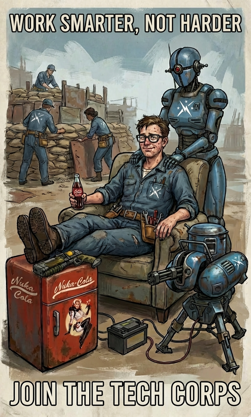 Т.е. пока народ ест суп из мух, там стоит полный нетронутый склад нкр за тонкой дверцей? А куда ну делся его персонал? Превратился в пыль, как и всё остальное население, когда батя люси щёлкнул пипбоем бесконечности?