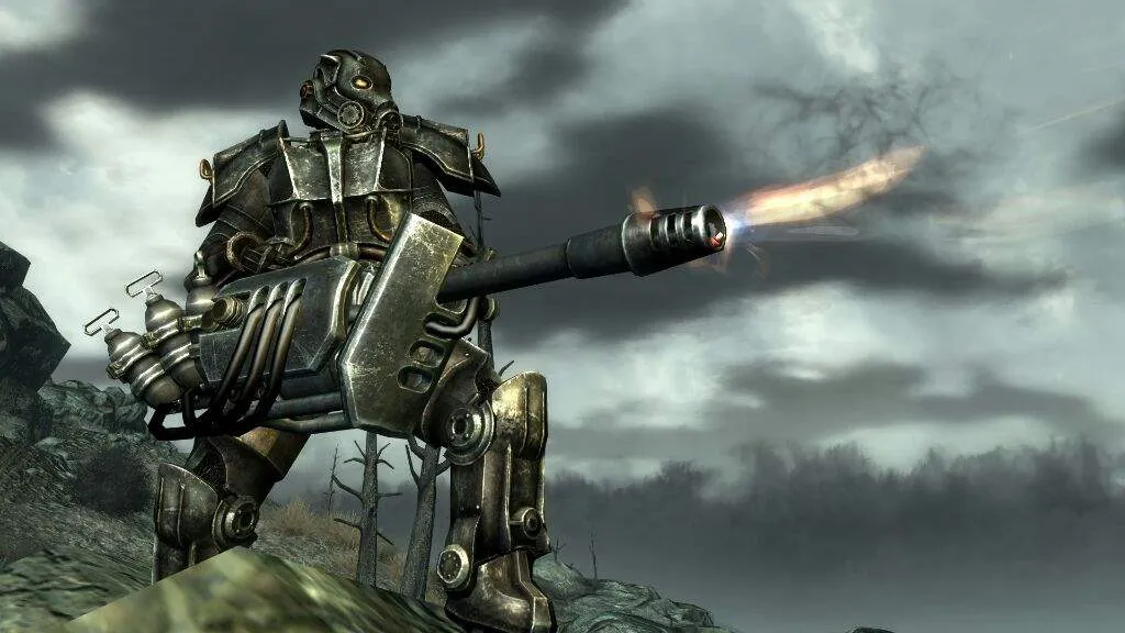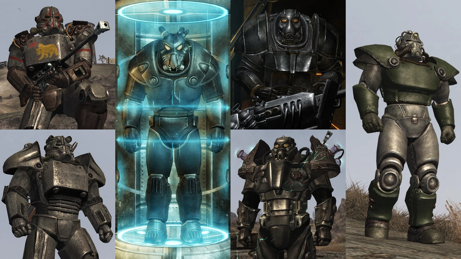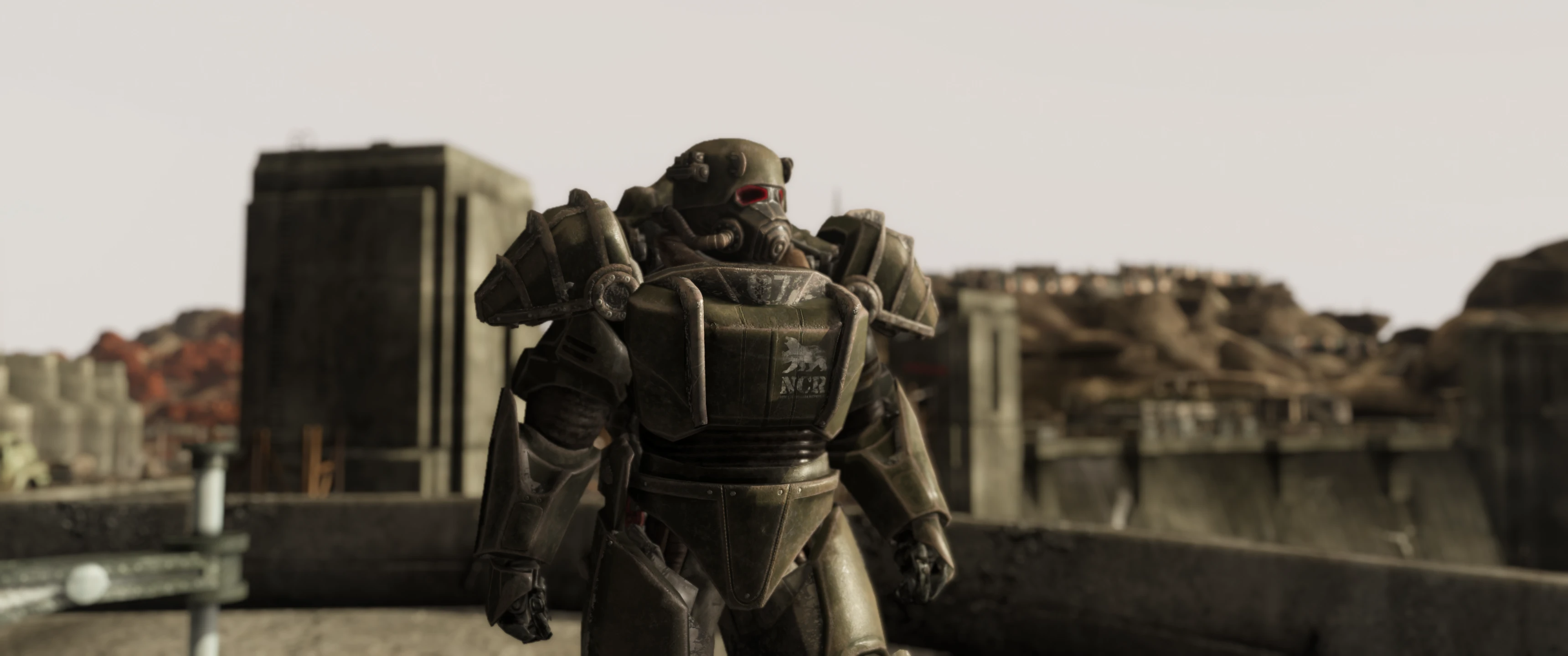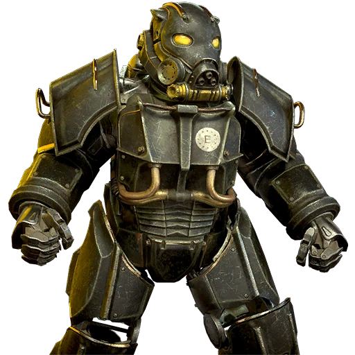Это что за хуйня? Силовая броня НКР? И чьего она производства? НКР носили полицейские брони со складов и пользовались законсервированными вертибердами, они нихуя сами не разрабатывали, их уровень НИОКР это долбоёбы с отрицательным ICQ как мистер Фантастик на электростанции Посейдон Энерджи. Как гражданский образец довоенной силовой брони это не выглядит, или нет? Что мешало Т-45 в расцветке НКР использовать. Хотя ладно, всем похуй.