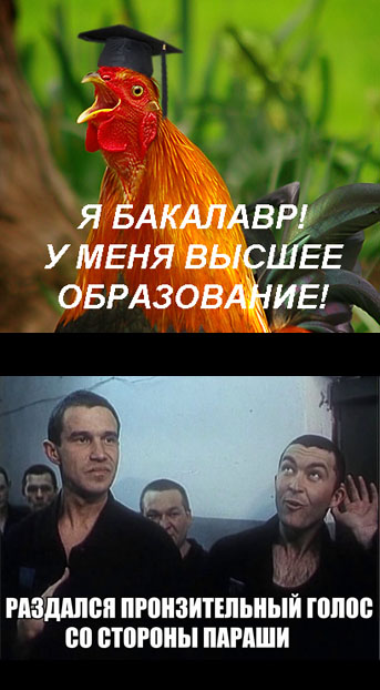 > Это какой-то глупый миф, что чем большее количество людей будет обладать корочками, тем лучше, ведь большинство эти самые корочки в лучшем случае в качестве подставки для чего-нибудь использует, а бумажки может с успехом применить по прямому их назначению после дефекации.