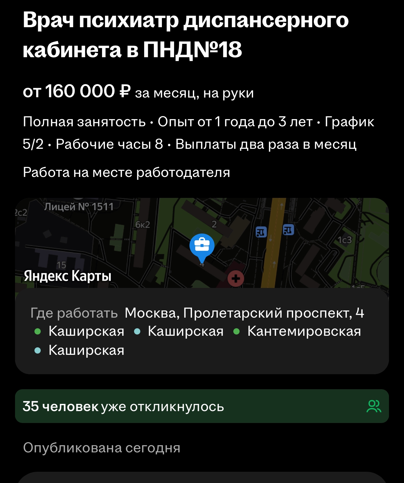 Что то задумался, а куда психиатру идти работать без целевого? Где есть свободные ставки они раскиданы между работающими, что бы побольше денег было. А новичку куда… На базе ординатуры ниче не предлагают. Спрашивают а где работать будешь? Але, это я вас спрашиваю где работат?!