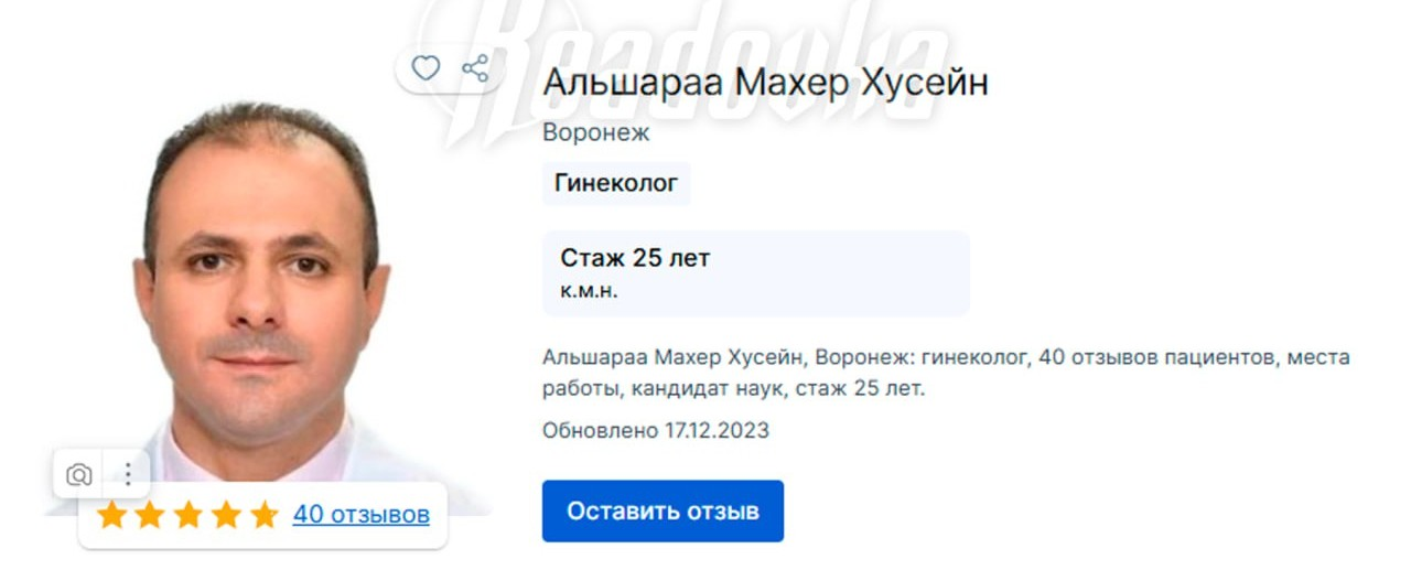 Аш-Шараа специализируется на гинекологической хирургии, лечении бесплодия и ультразвуковой диагностике. Его трудовой стаж насчитывает 25 лет. С 2018 по 2024 год он руководил женской консультацией в одной из поликлиник РЖД. Кроме того, он имеет диплом в сфере управления здравоохранением.