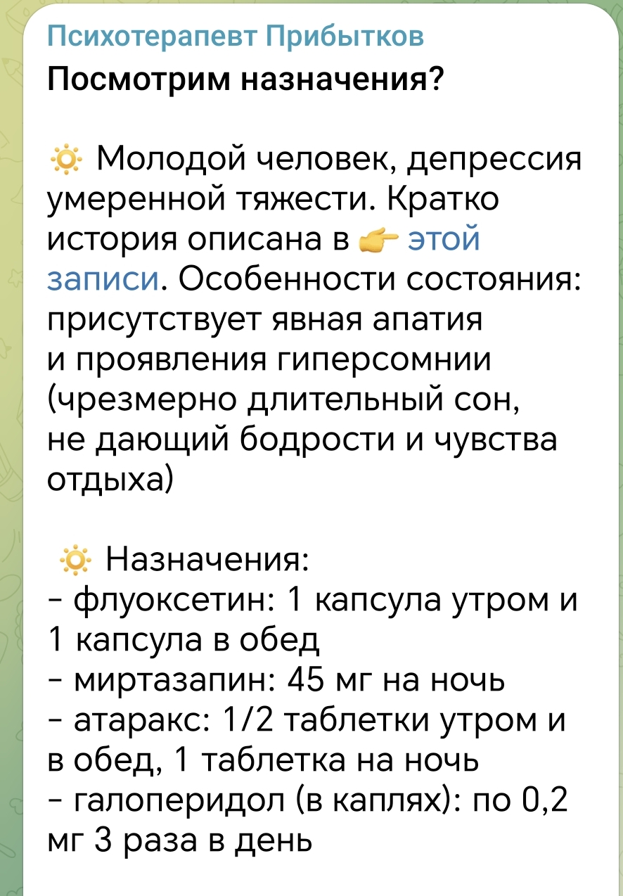 А первое ты че нейролептиков боишься? Че их бояться. Их надо любить. Немножко нейролептиков еще никому не вредило. А кто говорит, что навредило, тот шиз 100% там уже надо побольше дозу. Второе в чем смысл читать телеграммных врачей? Это просто фарм полудурков на прием. Надо показывать какой ты пиздатый. Кто будет это читать, только пациенты. У психиатров такие пациенты это даже не полудурки, а дурни без приставки полу. Че там читать? Только если интересно как наебывать народ