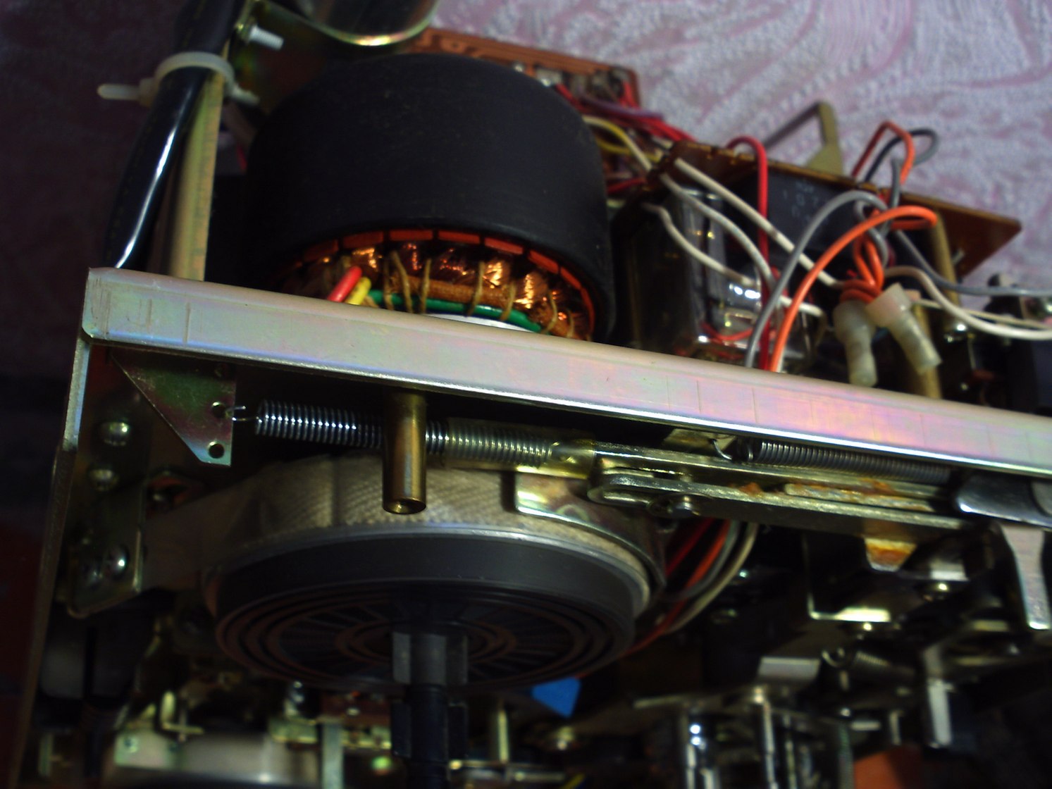 Слева тяжёлый совковый ЛМП от переносного магнитофона. Мотор этого говна требовал отдельной большой (советские микросхемы - самые большие микросхемы) микросхемы или платы с множеством транзисторов и резисторов для стабилизации хода. Также наличествовали микрики (микропереключатели), которые постоянно оксилялись и выходили из строя. Стоят джва тонвала, второй из двух - не нужен, но весу магнитофону (переносному блять) немного добавлял.