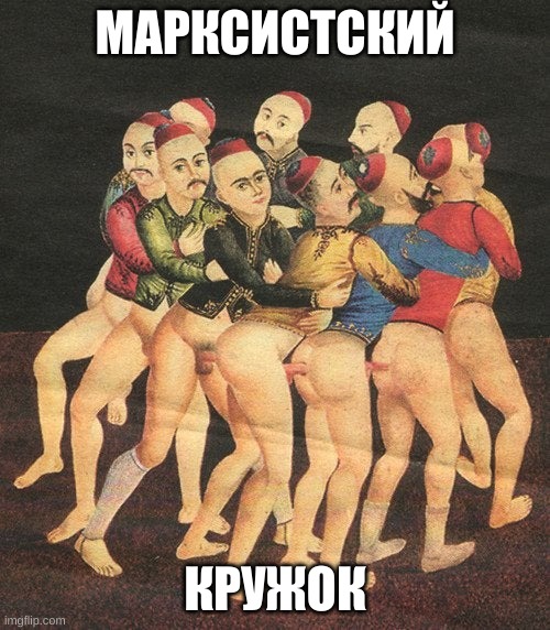 >>49002 (OP) >Мы ставим себе весьма непростую задачу — стать полноценными теоретиками, критически осмыслить марксизм как теорию, совершить анализ современного капитализма и выработать адекватную настоящему моменту тактику и стратегию по его преодолению. Ты хочешь с небольшими силами решить задачу, над которой в советское время бился не один институт. Начинать нужно с проекта, который привлечет больше умным людей. То, что ты предлагаешь сейчас, >организация научно-теоретической площадки для работы над проблемами марксизма, его теории и практики так же полезно для практики коммунизма, как круговая дрочка вприсядку.