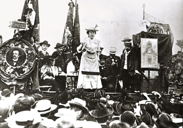 А может Клара Цеткин тут одета как обычная работница фабрики? Или Роза Люксембург? Они одеты как типичные представители интеллигенции, но на фоне них довольно скромно. Не говоря уже о том, что на фоне богачей они вообще босяки.