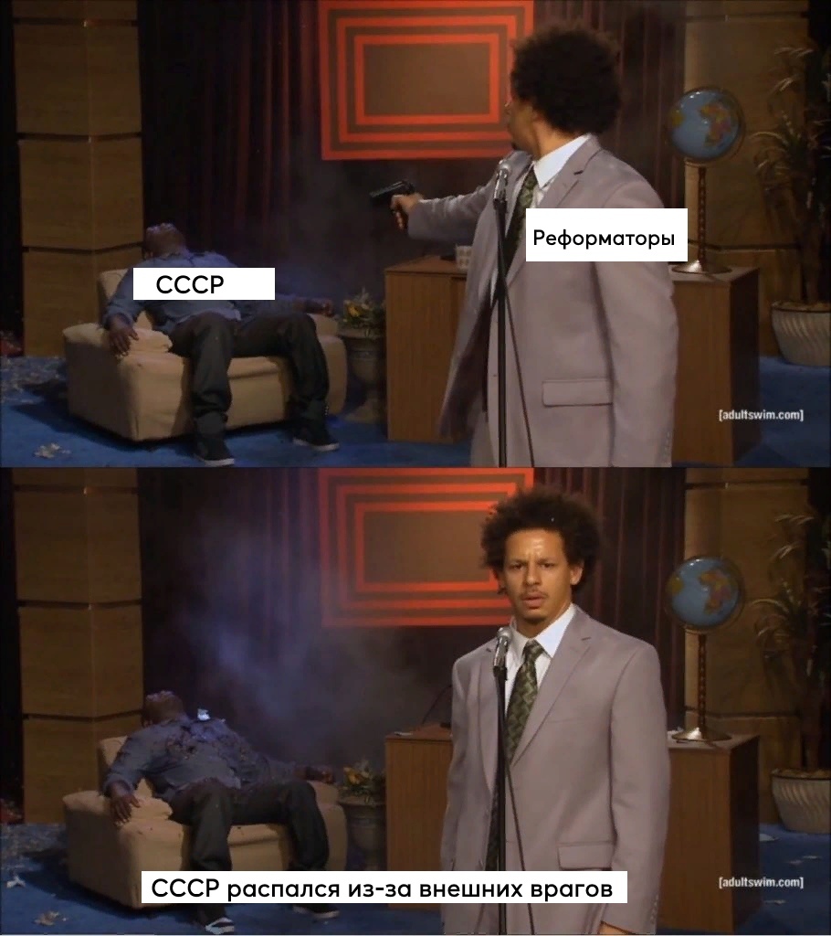 >>89330 Скользкое толкование. Можно пытаться дать сферическое в вакууме определение коммуниста, но в реальности определение каких-либо понятий формируется в голове абсолютного большинства. В голове абсолютного большинства элита КПСС - коммунисты, пускай не руководствующиеся коммунистическими идеалами. Поэтому утверждение "СССР развалили коммунисты" будет верно, пока так думает большинство. Бороться с таким восприятием приводя логичные аналогии неэффективно, т.к. это оборонительная стратегия, сидение в окопе. Нельзя победить артиллерию, состоящую из метания идеоматических предубеждений среднего эскаписта, уверенного в своем будущем успехе по расправлению плечей, оборонительными контрдоводами. Нужно их ментально пиздить, разбивая розовые очки об стену реальности.