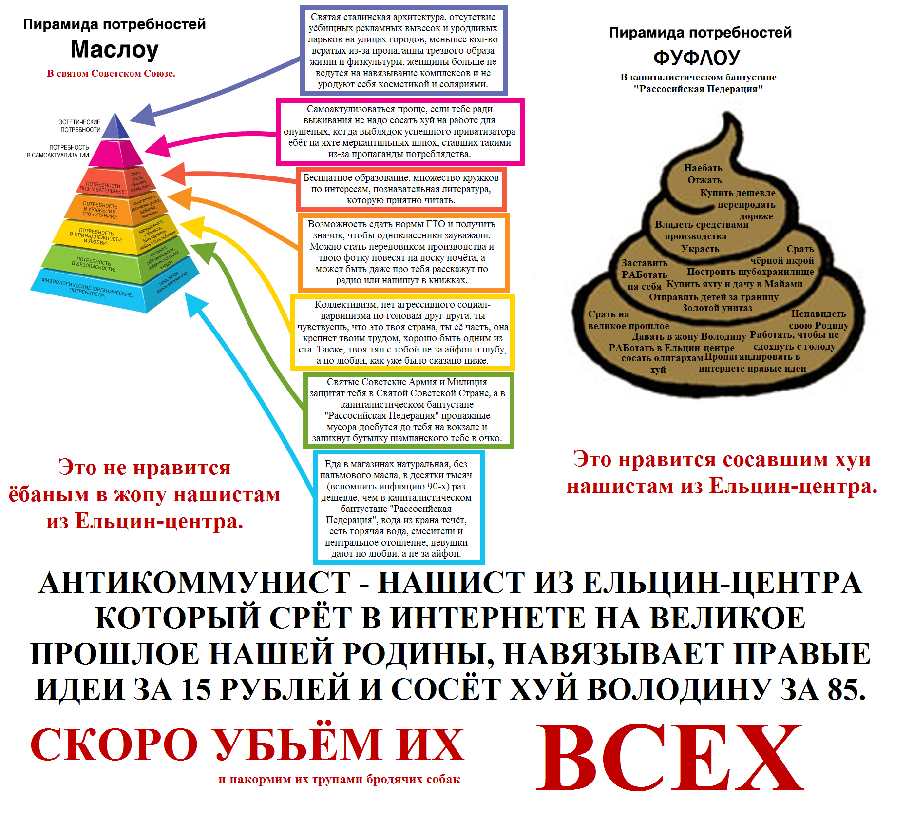 >>92017 >>92018 >>92019 И еще. Почему культурная модель так важна. Потому что она не даст, блять, вернуться к грязным мещанским мыслишкам и гоп-стопнет реакцию. Опыт просирания завоеваний социализма есть, практических выводом с этого опыта нет, вы уебаны. Чтобы предотвратить просирание полимеров в будущем точно нужна культурная база, а не заучивание в ВУЗиках и старшей школе политметодичек, которые все разминают вместо туалетной бумаги. Кроме того это МОЖЕТ БЫТЬ хоть как-то заставит эту левую пропаганду работать, а то я не видел никого, кто бы сказал, что его блять убедили. Везде одни жопоклюнутые, которые стали левыми, потому что наелись говна и вдруг прозрели. Крот прозрел, ло кек-пук-чебурек. Но открыть кроту глаза вы не можете, он только сам может их открыть. Так вот культурная модель большевизма или блять ньюбольшевизма должна мотивировать этих пидорасов начать задумываться раньше. Т.е. вот залила жизнь на СНГ-пространстве гречневому рак петровичу говна в жопу, только НЕМНОЖКО, он почесал репу и снова Дудя сел смотреть и на футбольные клубы дрочить, СНОВА ГОВНО В ЖОПУ ЗАЛИЛИ, он уже начал чесаться и думать может я коммунист, а? А вот может с конкурентной моделью необольшивистского СОЦРЕАЛИЗМА 2.0 хаха как может быть реализм, когда социализма не существует в 21м веке, может быть тогда постироничный детерминистичный СОЦФАТАЛИЗМ? этот рак Петрович после небольшой порции говна в жопу станет задумываться не коммунист ли он с обосранными штанами, вместо того, чтобы снова садиться смотреть Дудя и дрочить на футбольные клубы?