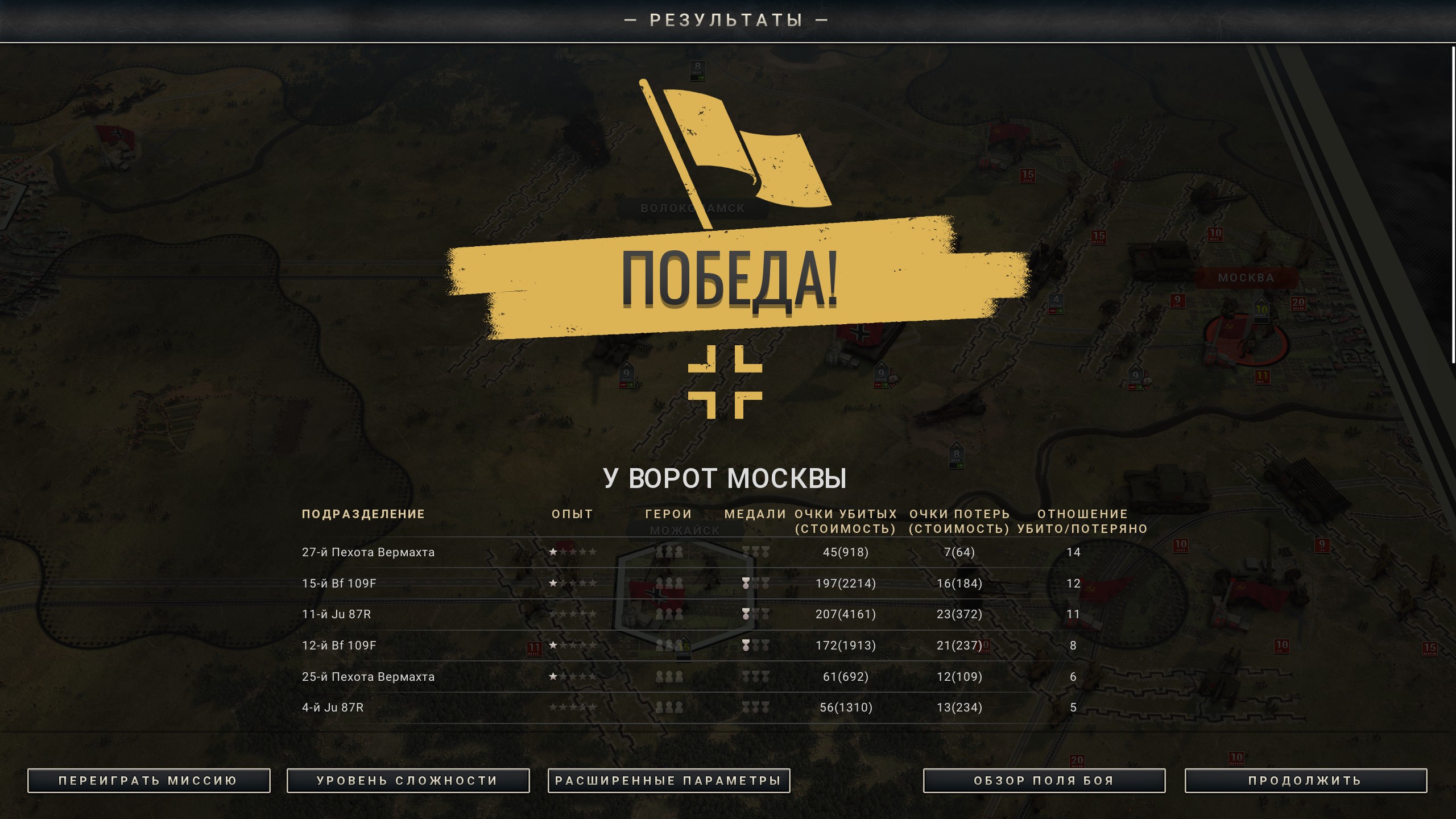 Врата на Москву открыты после почти двух часов. Чекнул что у меня в следующей миссии и на удивление там оказались всё те же 7.2к престижа после всех пополнений что было и в начале врат на Москву. Это хорошо. Опять таки, чем длиннее миссия и больше дивизий, тем тебе более влом переигрывать на поздних ходах когда ты понял что лучше бы было по другому пару ходов назад сходить. А ведь тут очень много прэколов от разрабов на нежданичке соит что-бы было интересно и весело)))00. Например когда ты хочешь пройти к Москве снизу, то у Орла в лесу несколько танков стоит что по скрипту выходят тебе в жопу. Поэтому надо их блокировать и пехотой в лесу хуяить пока они не выехали на поля. Прэкольно))