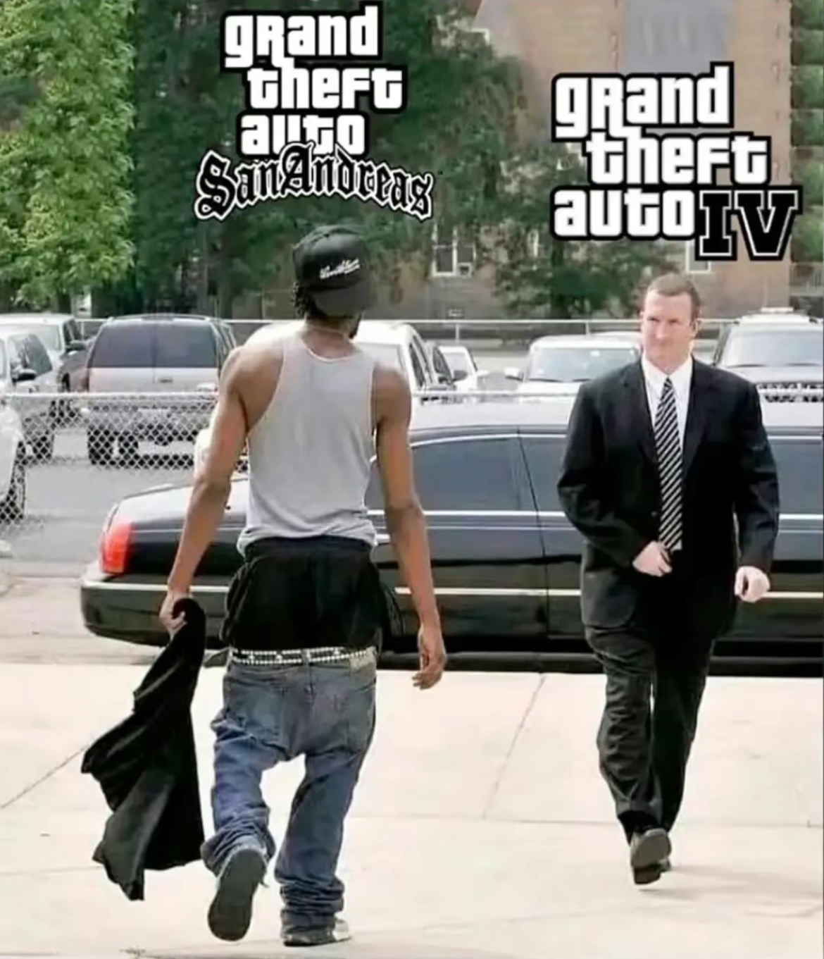 >>9692171 а в гта 4 типа блять подвеска не валится ага ага я ахуел что в гта 4 когда на джипе поворачиваешь, у него колеса В РАЗМЕРАХ увеличиваются. ебать реализм. в реальной жизни по мнению Срукстаров колеса уменьшаются и увеличиваются. такой уж прям реализм, что даже бензин не заканчивается. в мафии 2 он заканчивался кстати. жаль что не было возможности выйти из машины и чтобы Вито Срулетта нассал в бензобак и типа платить не придет.ся