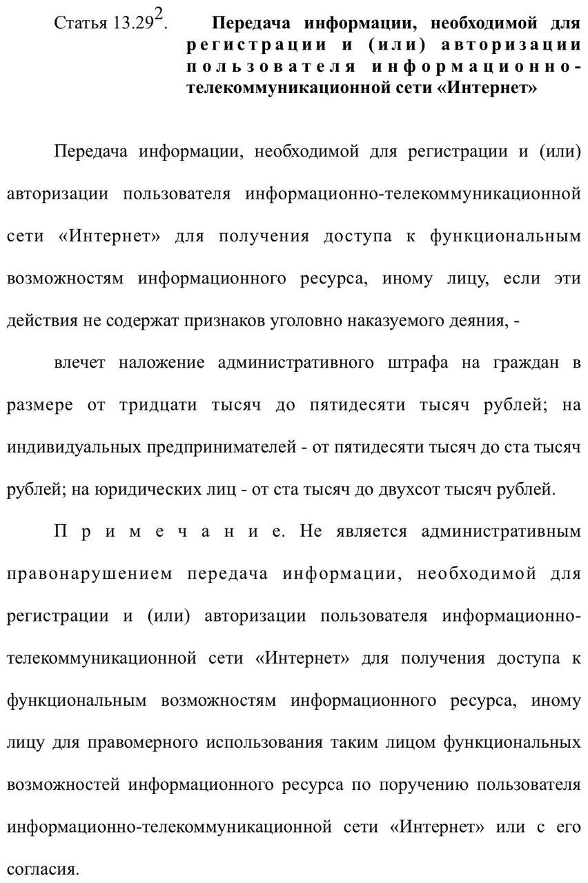 Передача информации, необходимой для регистрации и (или) авторизации пользователя информационно-телекоммуникационной сети «Интернет» для получения доступа к функциональным возможностям информационного ресурса, иному лицу, если эти действия не содержат признаков уголовно наказуемого деяния, - влечет наложение административного штрафа на граждан в размере от тридцати тысяч до пятидесяти тысяч рублей; на индивидуальных предпринимателей - от пятидесяти тысяч до ста тысяч рублей; на юридических лиц - от ста тысяч до двухсот тысяч рублей.