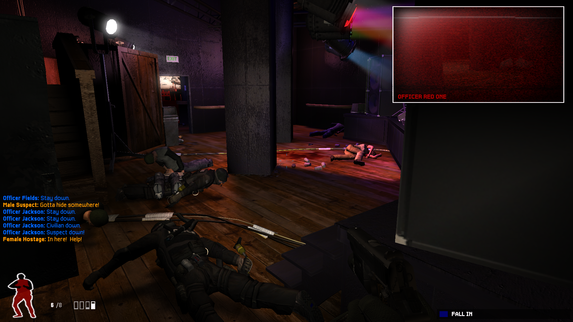 у меня вопрос: а нахуя в сват 4 вообще команда ии эта? я 7 миссий никак с ними не взоимодействуя прошёл, они там на респе куковали. щас ради интереса думаю, ну-ка клуб перепройду на счёт повыше, заодно по-тактичному. ну и вот на скрине результат того, что я просто отдал им приказ зачистить помещение, а сам пошёл в другую дверь. на самом деле эти ебантяи вообще никого там не завалили, просто двое слились нахуй об чела с узи, я потом уже пришёл заценить и там всем раздал в голову, заложникам тоже. даже дебилы по сетке, которые друг другу в жбан спреем прыскают и то полезнее были