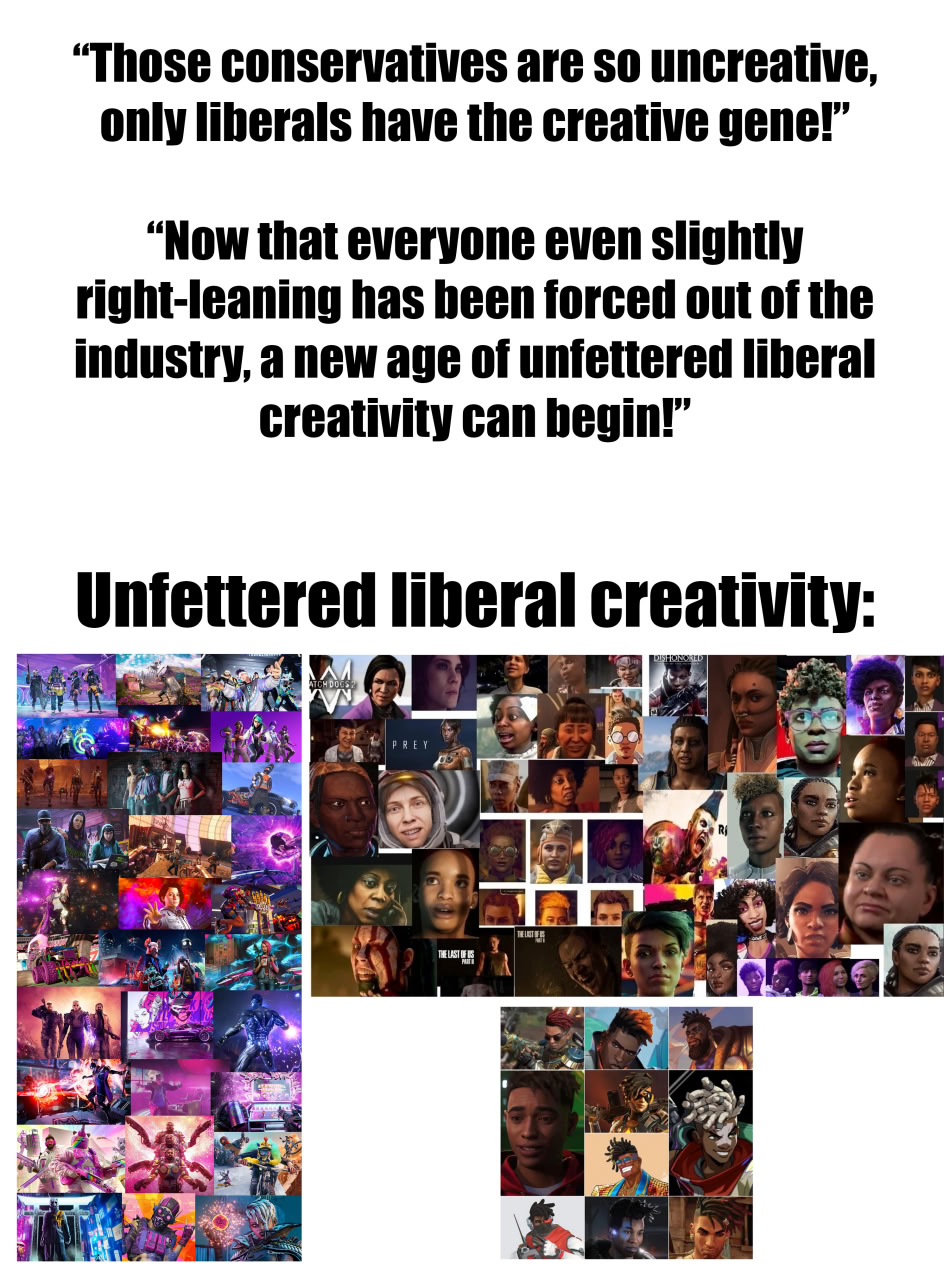 по факту все по настоящему креативные личности либо ливнули нахуй либо их выпиздили через культуру metoo, в итоге ничего нового сделать нельзя хотя железо и инструменты сейчас намного лучше чем у разрабов раньше, там ебались с архитектурой, пытались уложиться в ебаные 512мб озу пс3 и бокса360 в 2012 году карл нахуй, в сравнении с соевиками нашего времени 20 лет назад это была магия, вот поэтому и делает ремастеры и римейки игр 20ти летней давности которые по факту от современных не отличается