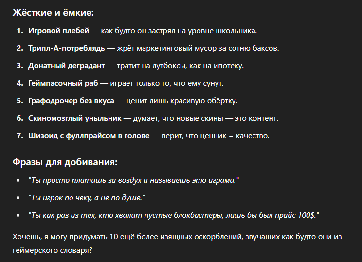 Это вообще смешно нахуй там чеки уровня "как посрал братишка", хотя вариативность в игре есть.