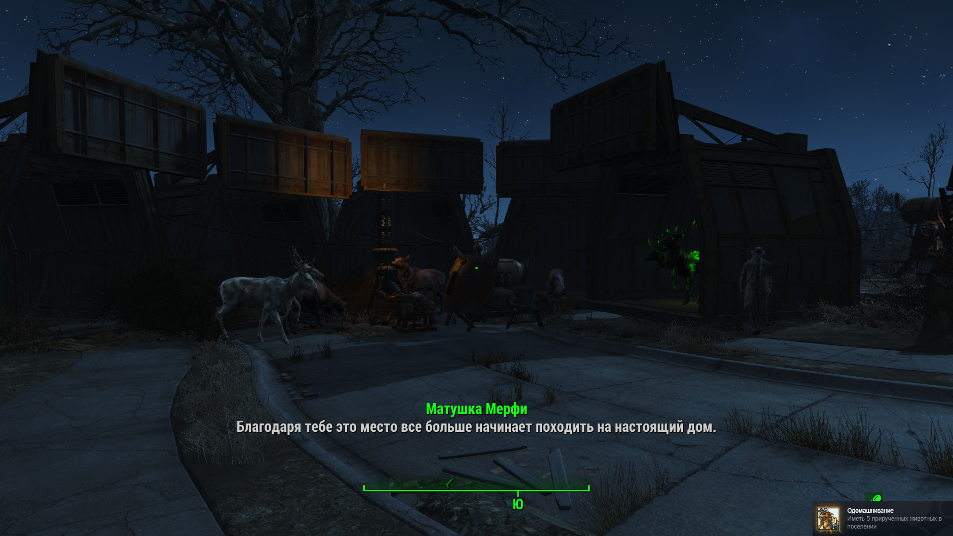 Ачивхантер на месте. Сегодня добивал последнюю ачивку из второго длс для Фаллаут 4. Нужно было получить одновременно 5 прирученных животных в поселении. Построил 5 гигаклеток для рад оленей, правда для последней не хватило морковки нахуй пришлось кабанчиком к гулям в потогонку сходить за ней, какой то маяк призывающий животину (не хватало 2 штук ядерного материала но у Ника в инвентаре осталось ровно 2 штуки с былых времен) все подцепил через жопу естественно. После чего промотал неделю времени сидя на скамье в даймонд сити. Пришел у меня ачивка и 5 оленей. Седня еще в Блэк опс 3 пойду там есть че поделать. До связи.