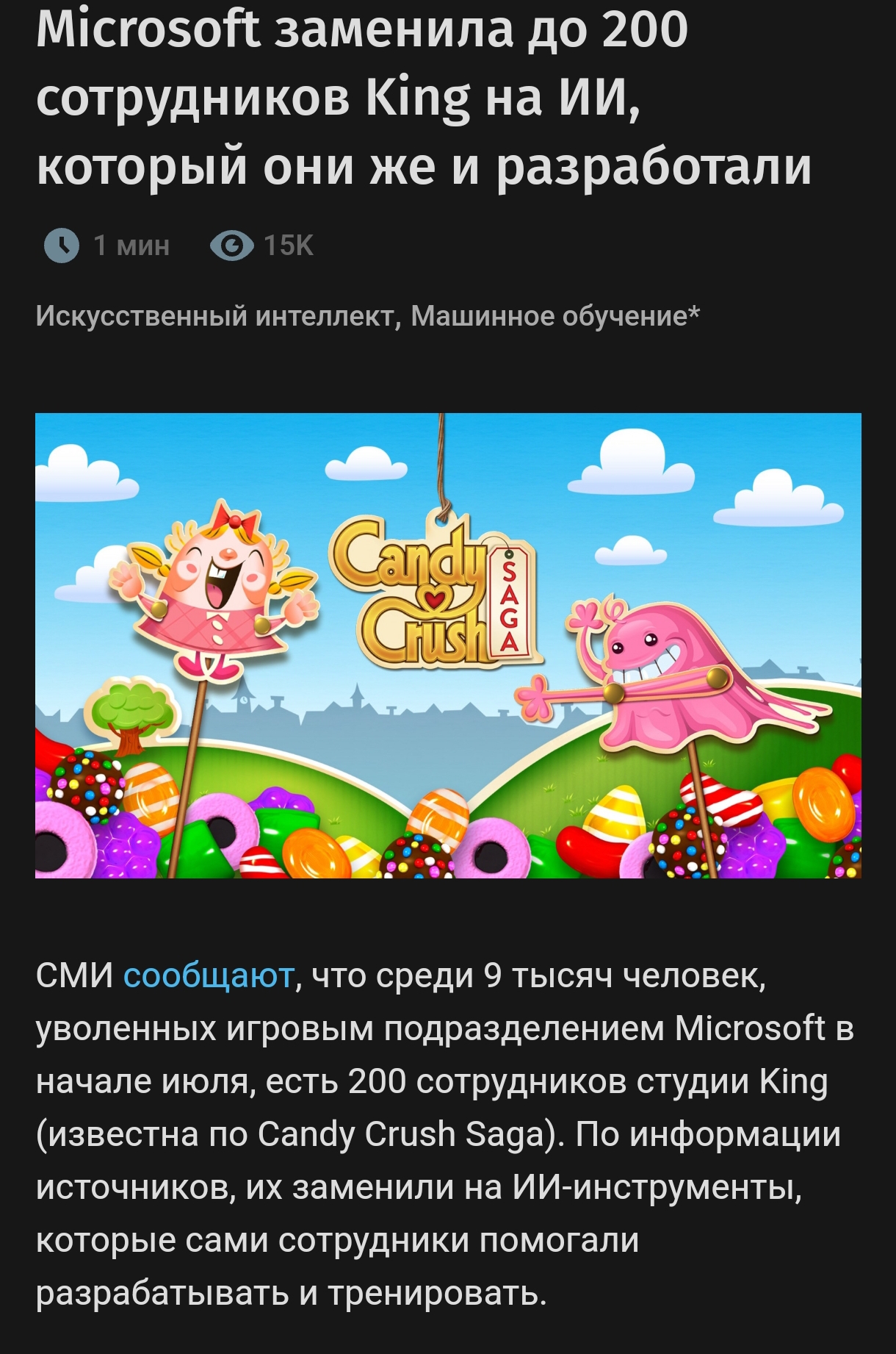 Ну так когда ещё говорили, года два назад что после покупки активижн майкрософт просто начнёт всех потихоньку всех сокращать пока пару студий разрабов сервисов останется. Вот оно и происходит уже давно, ещё в том году пошло когда разрабов прей, хай фай раш и ещё каких то там закрыли, потом ещё сократили, потом ещё сократили, этот год начался с закрытий, щас ещё закрыли и сократили. Вот оставят тех кто колду делает, диабло там, море воров, тот выживач про уменьшенных пиздюков, вот таких типа. А остальные нахуй пойдут. Вот оставят у беседки штат который будет апдейты к 76 делать и хорош.
