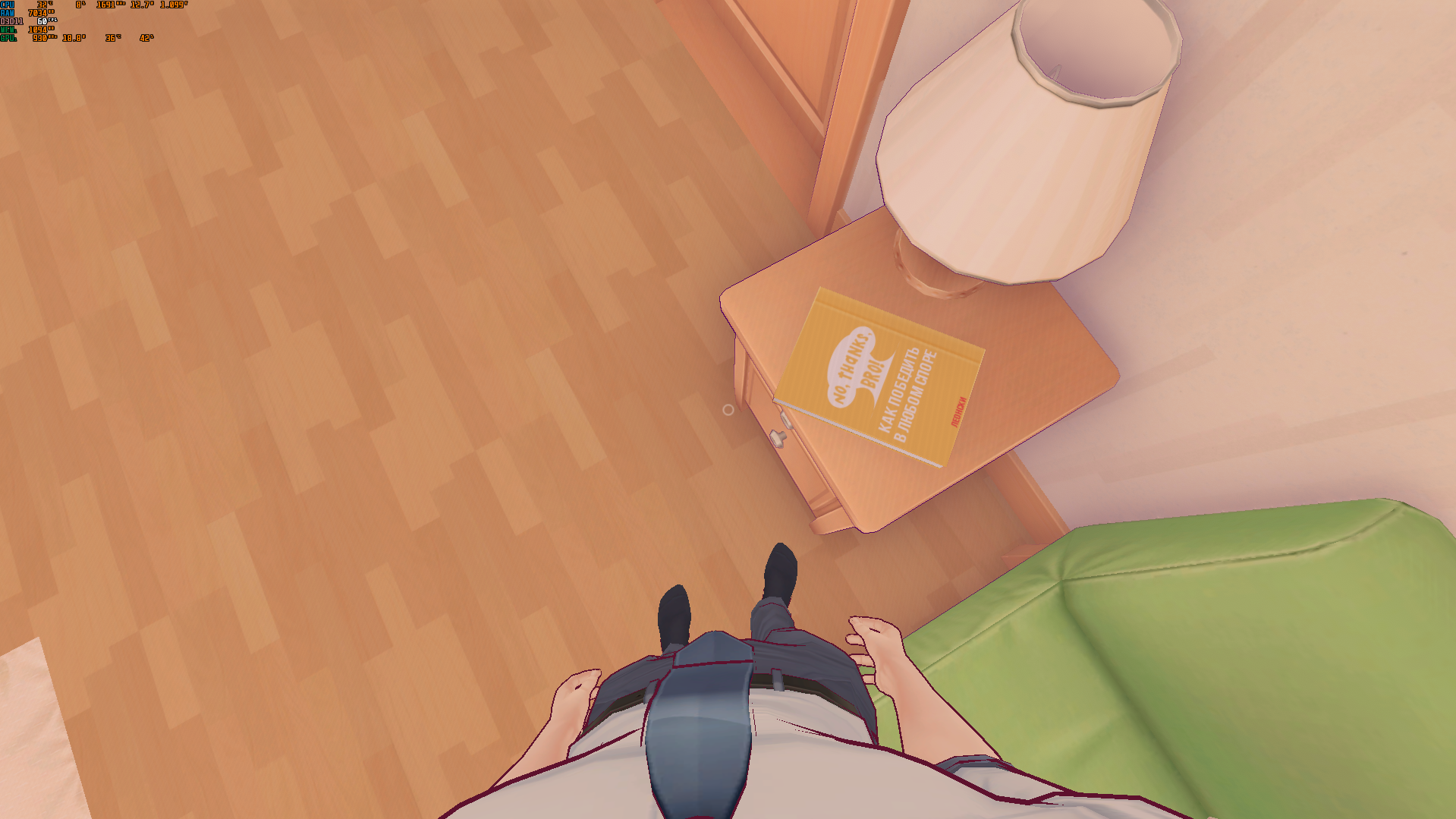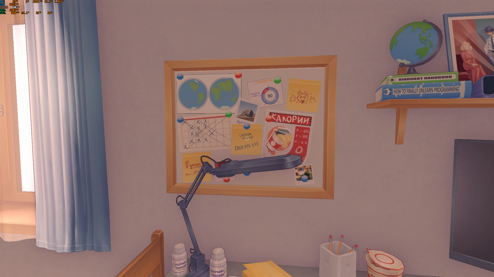 Нравится, когда даже ты понимаешь отсылки на многие вещи. Что я нашёл: 1. Корешок книги скорее всего отсылка к пун-пуну. Раньше форсился на мангаче. 2. Отсылка к знаменитой фразе Леона из RE4 3. Отсылка к рекламе микрозаймовой хуйни. То что не заскриншотил: 4. В плакате Миты с надписью SUMMER угадывается аллюзия к Бесконечному Лету 5. Розовый дневник около телевизора с надписью Love Note очевидная отсылка на Тетрадь Смерти.
