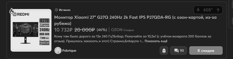 >>9721019 >>9721002 Мля малой ты чо гонишь? Мониторы ща практически бесплатно отдают - чуть дороже воздуха стоимость. 2к240гц - 10к руб. Ты настолько нищий что ли? Пиздец, соболезную.