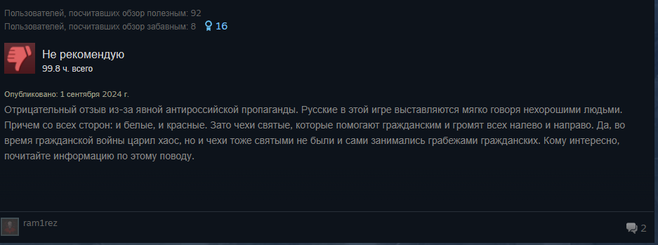 Игра кусок русофобского говна, где все русские орки и быдло в той или иной степени, а чехи это Белые Господа, которых мучает совесть каждый раз, когда это быдло нужно пограбить ради выживания и запачкать свое белое пальто.