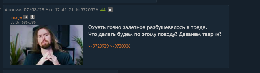 >>9721484 Чего ты мне это рассказываешь? Я просто говорю что это не норма, всё. Там ебитесь с кем хотите мне без разницы, просто форсом вот этого нарратива про "норму" когда это объективно не так вы раздвигаете очко овертона для трансов и прочего сблёва, и вызываете к себе лишний негатив. Надо было не выдумывать норму, оправдываясь древними временами с животными, а изначально напирать на то что пока никому не мешаете имеете право ебаться и всё тут.