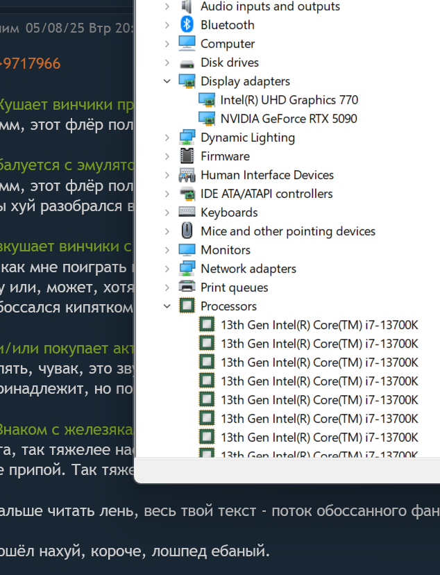 Чиплеты это просто способ сэкономить на производстве, а не революция. Разные типы ядер в играх толком не используются, потому что кодеры не умеют, либо это невозможно. Фризы и лаги в современных ААА лучшее доказательство что твоя умная архитектура это кал Это ты споришь против объективной реальности наслушавшись маркетинг слопа от инфлюенсеров