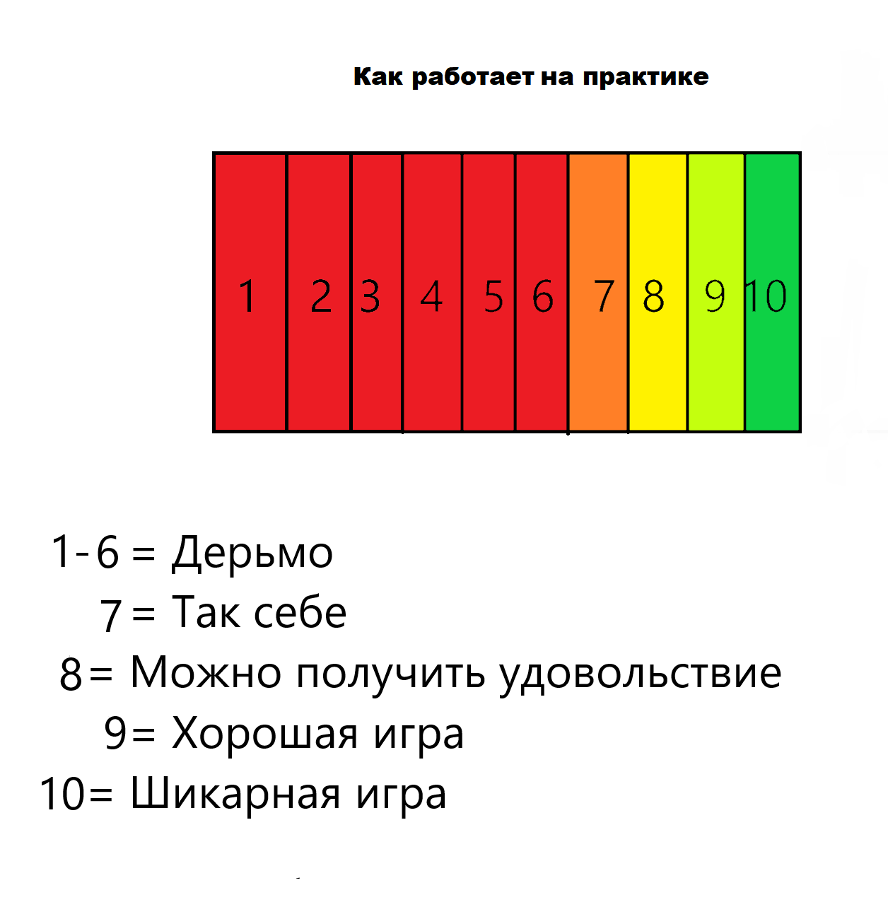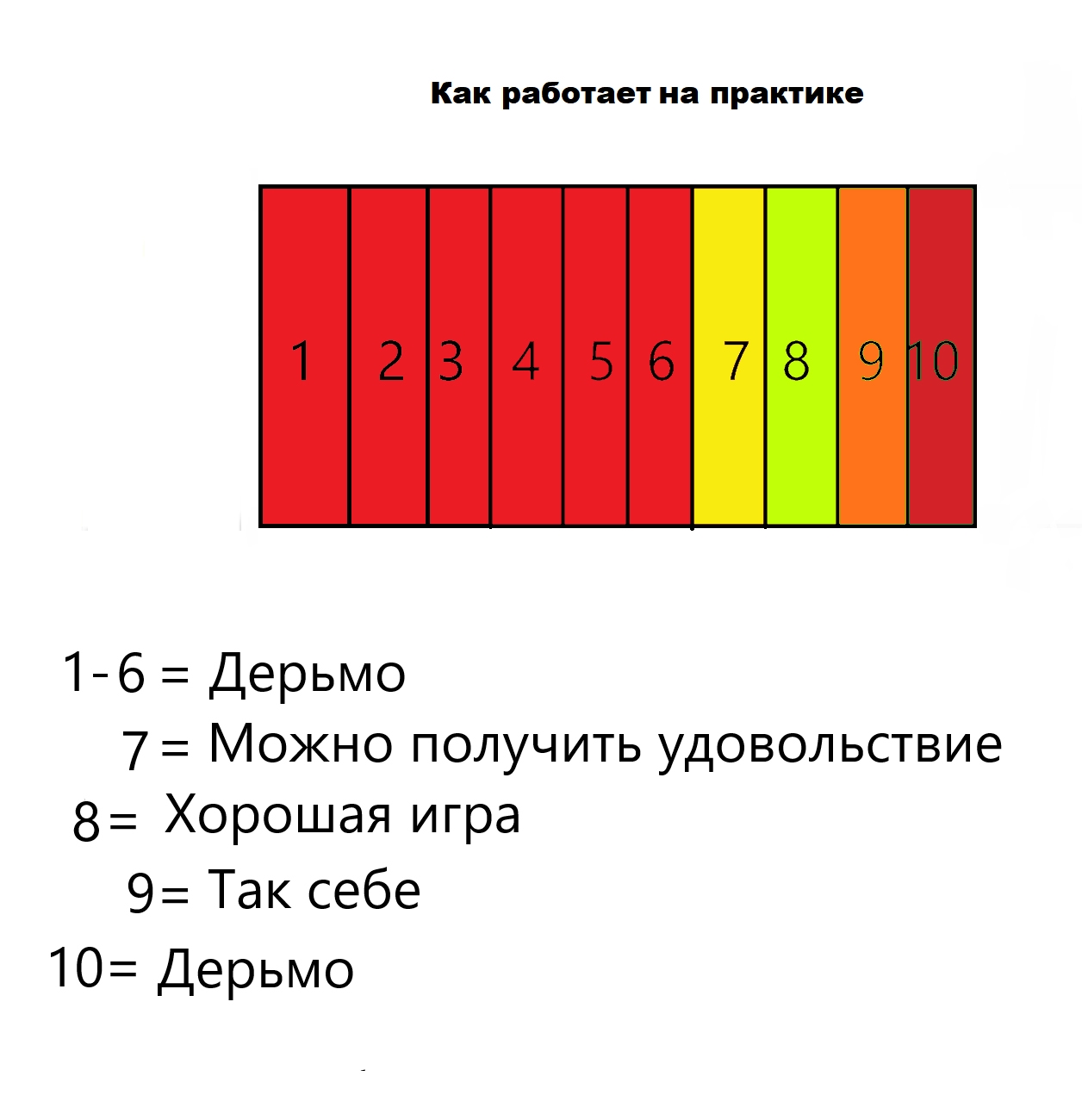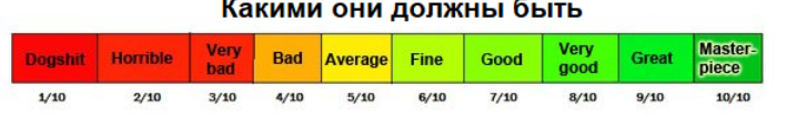 Вторая причина в том, что человеку лень оценивать по 10-бальной шкале, достаточно четырех градаций: говно, норм, хорошо и гениально.