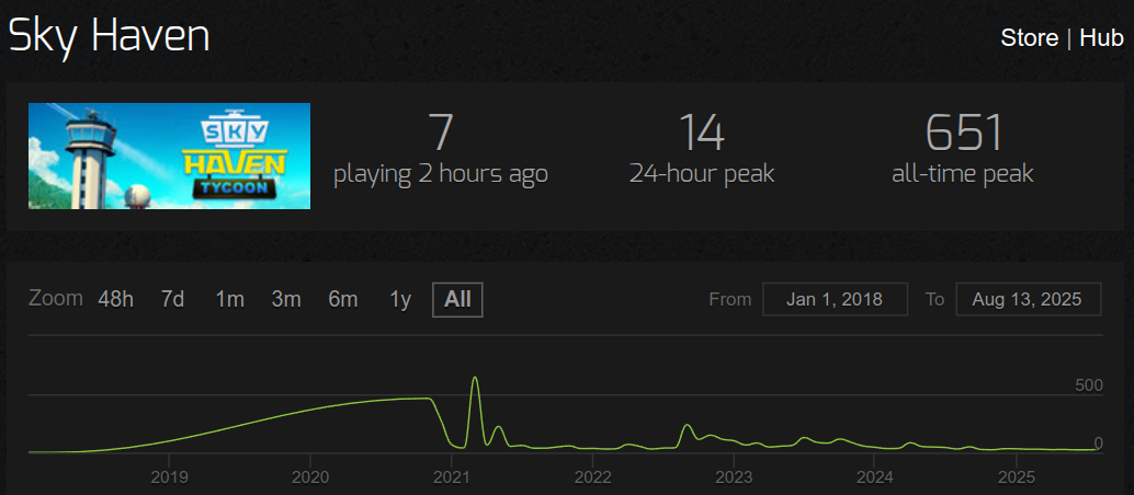 а может быть бажным говнищем, которое никуда не придёт, например sky haven, который с 2021 года и геймплеем уровня андроеда требует для работы не меньше, чем кукурузис 3, поэтому после пика в 500 игроков, никто её больше не будет покупать — всё, прыихали
