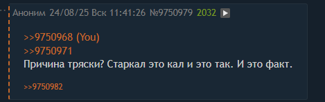 >>9754370 Как я и сказал. Будучи обоссаным с головы до ног в старкалотреде, колясочное ебанько на таблетках прибежало срать сюда, но и здесь его проткнули фактом, что старкал это кал.