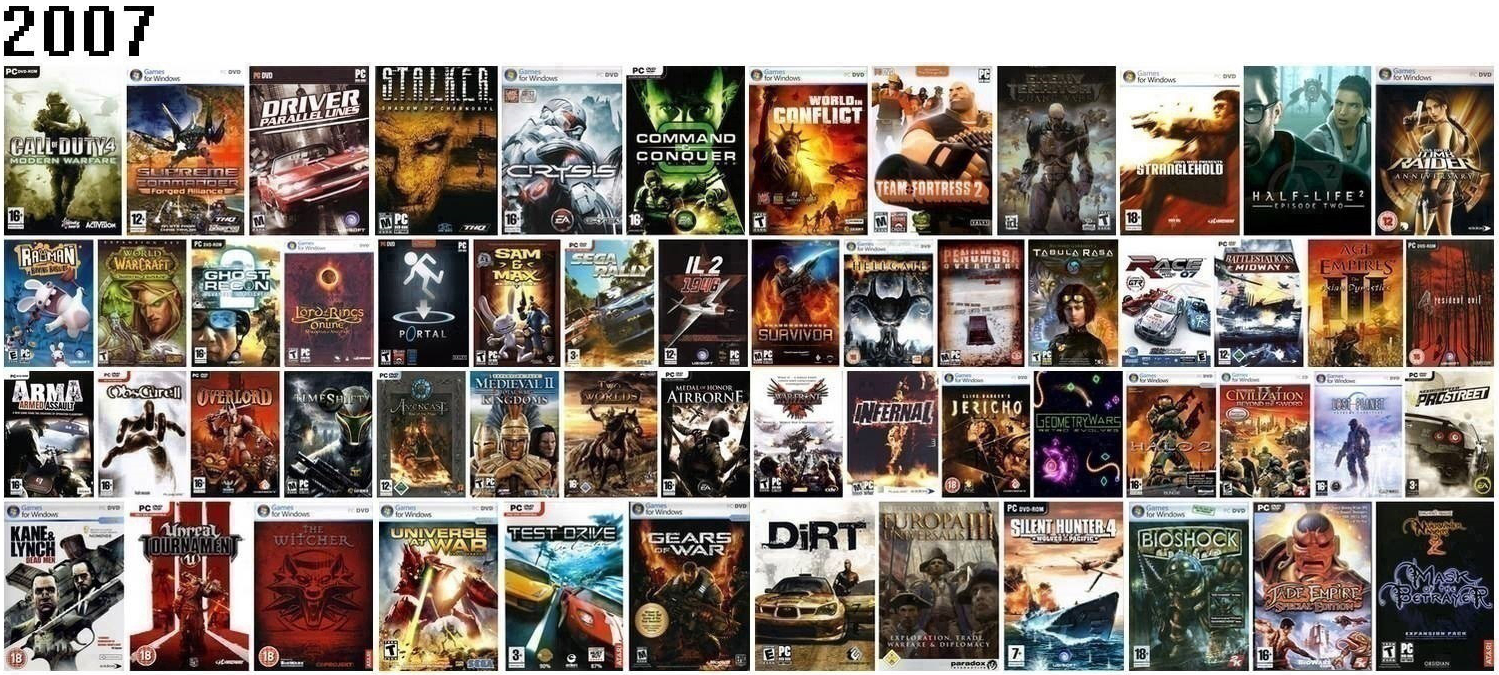 Об этом как-то не вспоминают, но в те времена игр действительно выходило гораздо меньше, чем сейчас, и играть приходилось в то, что есть. Например, почти не было выживачей. Stranded 2 помнит кто? Вот, альтернатив-то особо не было, никаких вам форестов, дэйзи и проч. Шутеры про Первую мировую? Да кто вообще станет делать нудятину о сидении в окопах? Инди до Майнкрафта и кикстартерной революции были андерграундом наполовину на флеш-сайтах. Часть игр была соснольными эксклюзивами, все эти РДР, убийца-скотт-шелби и лануары. Стим еще не взлетел, игры были на дисках (знаете, дети, что такое DVD? А CD?). Слово "торрент" я впервые узнал как раз в 2007. Номады спокойно ставили крепким середнячкам 60/100, польским шутерам на агру ставили 20/100. Так и жили.