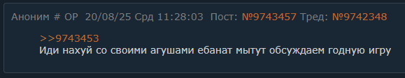 сидит такой агуша 95 года рождения по совместительству нинтендодаун и строчит посты в оправдание собственного интеллектуального превосходства перед быдлом в 2025 в /v/ раз в полгода ему дочтупна подобная опция и это несомненный успех в его мировоззрении и парадигме мира в котором видимо все очень уныло и он совсем не злой, нет, это все вокруг такие и вообще жизнь такая ахахахах