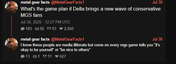 >>9756532 Ну это то понятно, камрад, но откуда вылезают левые братья которые постоянно меня убеждают в том, что токсичный калич прошлого на который надо вешать двадцать предупреждений, а чаще всего резать, это какая-то невероятно левая вещь. Недавно же был период когда калзиму из всех хуев поливали, как и другую игровую калсику, особенно это обострилось с мгс5, но видимо сойлениалы которые это делали вымерли, скукожились на резетере, а зумерам уже объяснили что мгс это правильные игры, как другая реабилитированная хуйня. но триггер варнинги вешать надо.