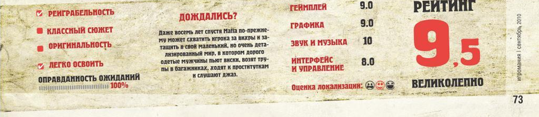 Помните скандал когда игромания выпустила на мафию 2 рецензию где разъебала игру, а потом на форум пришли школьники разъебали игроманию и они выпустили вторую рецензию(пик)