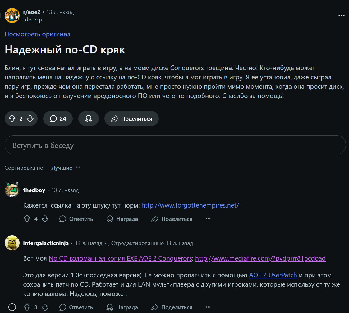 И я помню те легендарные магазины, где игры по 30-60р со сломанными кряками продавали. Когда тебе покупали АоЕ2 а там кряка не было и ты сидел в демку вшитую играл в котором тупо обучалка за кельтов была доступна. Или ГТА3 где игра могла просто вылететь побив сейвы. Или КС 1.3 который просто ошибку выдает при установке и все. И напоминаю, что тебе никто эту хуйню не обменяет и не вернет.