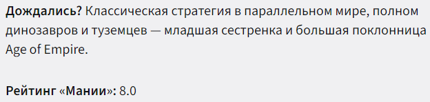 Твоего копролита даже в Стиме нет, про такое говно только v-шный биомусор с синдромом утенка помнить может. Какая-то всратая РТС с динозаврами, немудрено, что не взлетела. Хороший и упитанный представитель копрогеймдева нулевых.